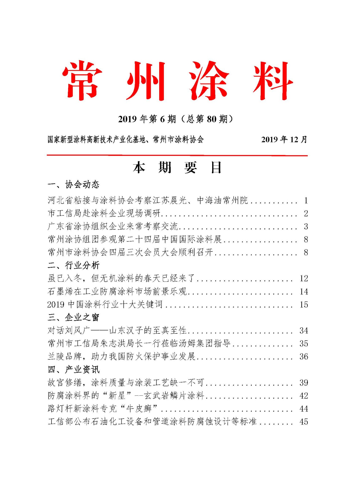 常州涂料簡報2019年第6期(總第80期)
