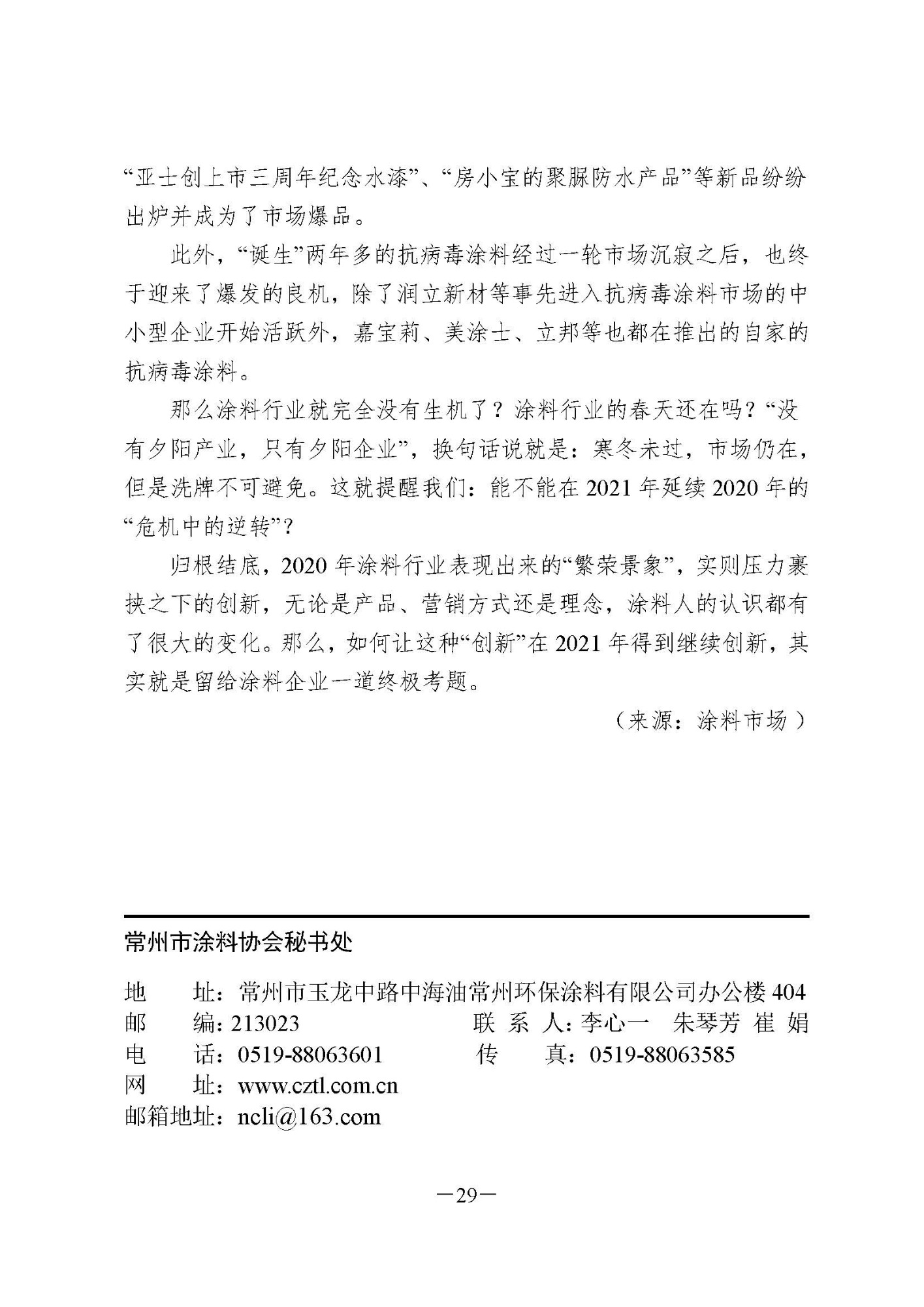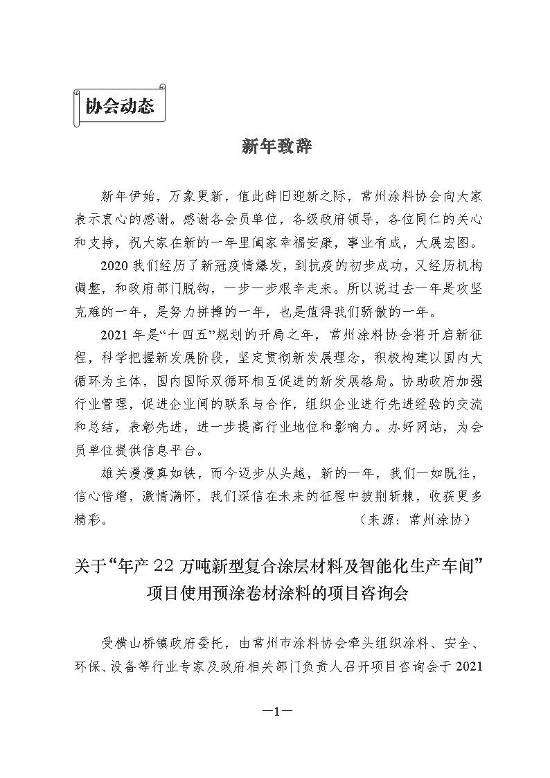 常州涂料簡報2021年第1期(總第85期)