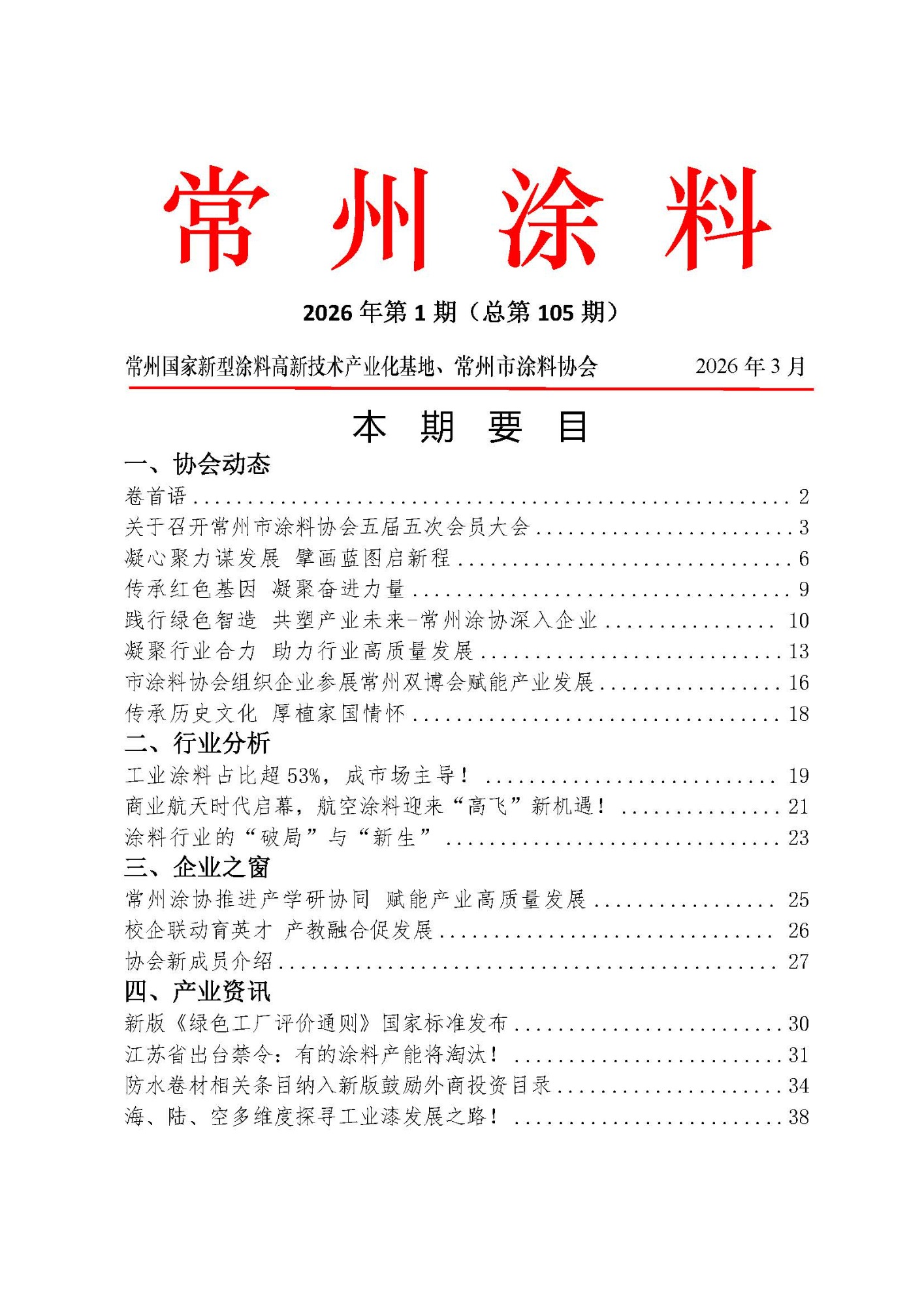 2026年常州涂料簡報第1期(總第105期)